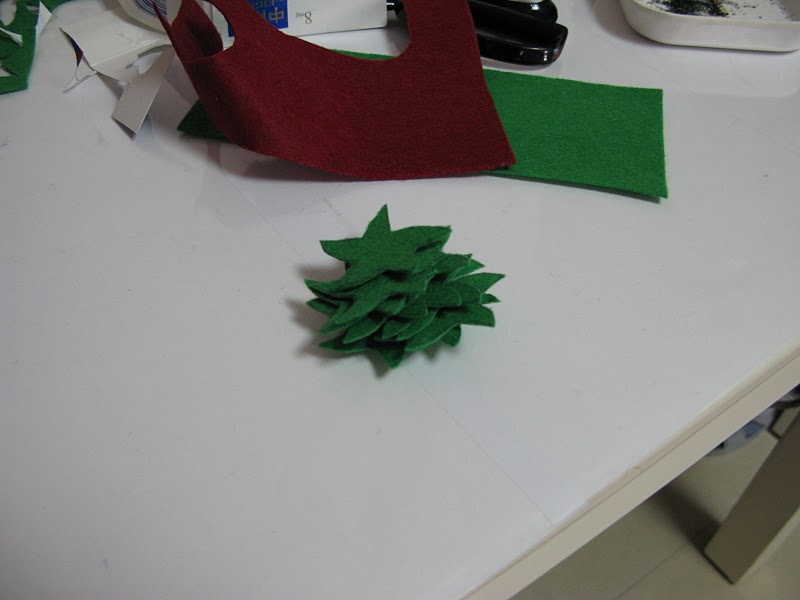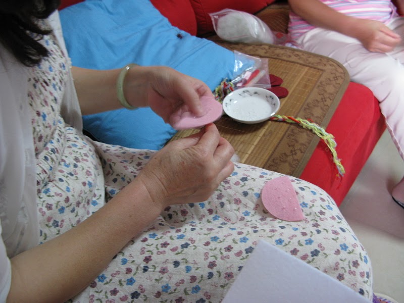 然后开始做蛋糕花的时候,公公婆婆也看不下去了,于是公公开始帮我画好剪好,婆婆帮我一起缝