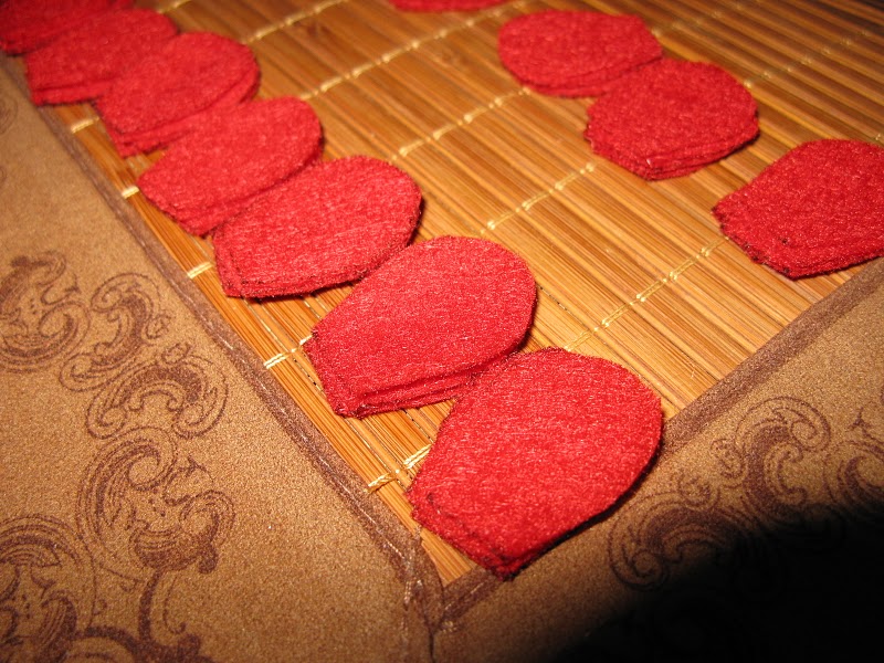 还得在上面订小珠子 排好等待缝制的玫瑰花瓣